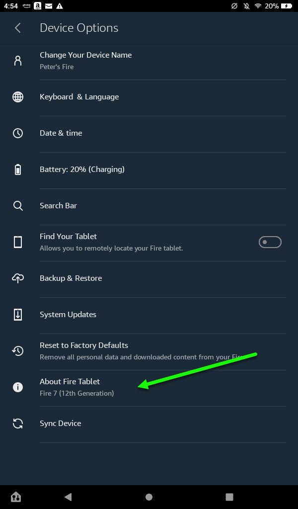 Under the About Fire Tablet, note the version of Kindle Fire you have.