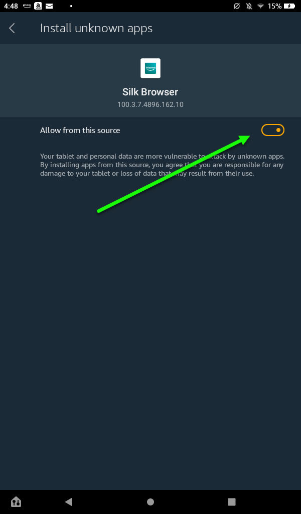 Select Silk Browser. Turn on the Allow from this source slide box.